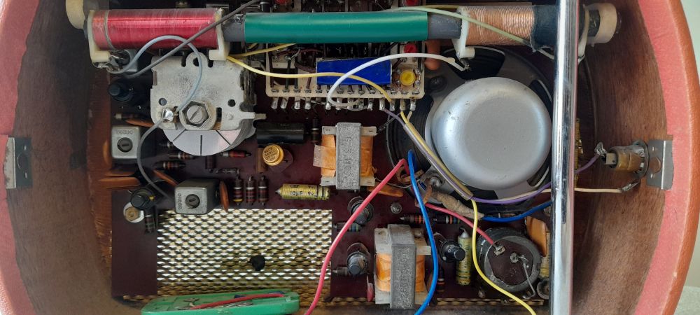 Marque Ducastel, modèle Ruby, gamme PO-GO-OC, N° 11381. Fabriqué en France, Début 60. remarquez les transistors montés sur des supports.