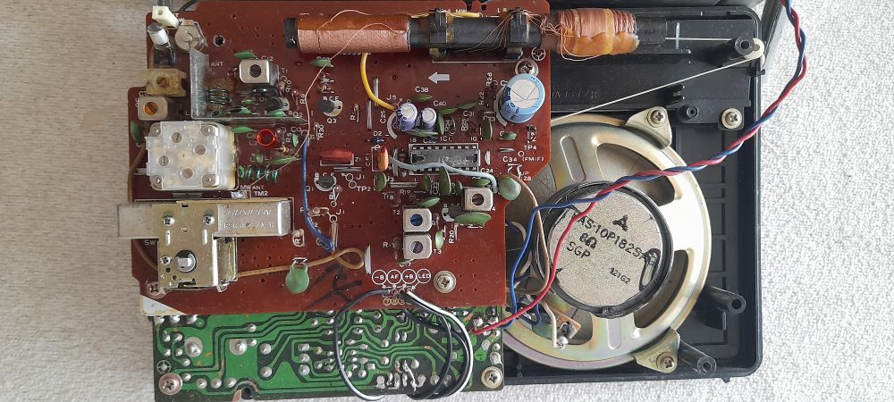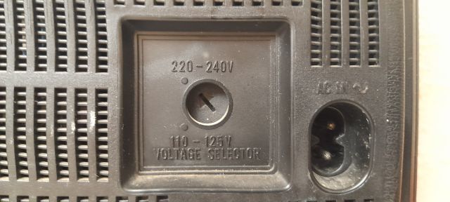 Marque Panasonic, modèle RF-1403LBS, N° 1DAPB0436 , début 80. Fabriqué à Singapour par Matsushita Electric, gamme PO-GO-FM, piles et secteur. M/A par bouton poussoir. Prise écouteur, sélecteur de tension 110/220 volts.